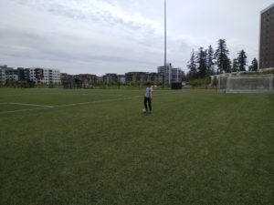 I am playing at soccer field in this picture. It was cool.